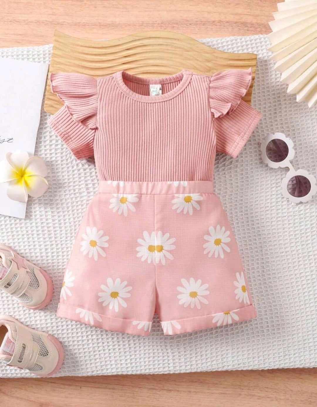 Blusa acanalada+ short con estampa de flores
