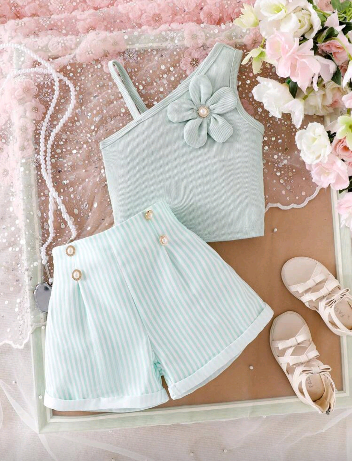 Blusa de mangas asimétrica + shor abotonados