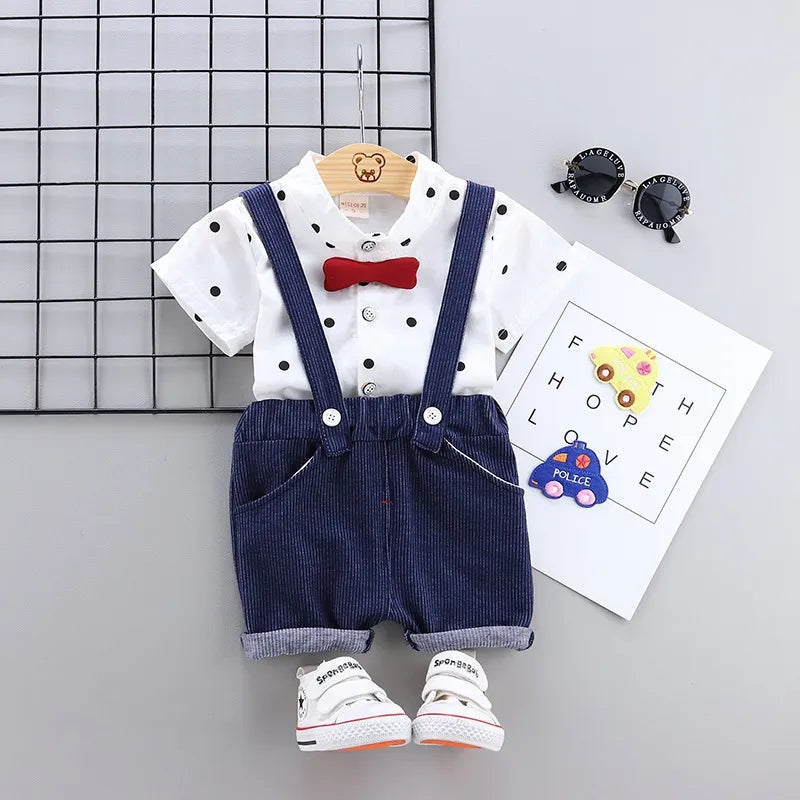 Conjunto niño. Camisa+ short con suspensorio+ moño