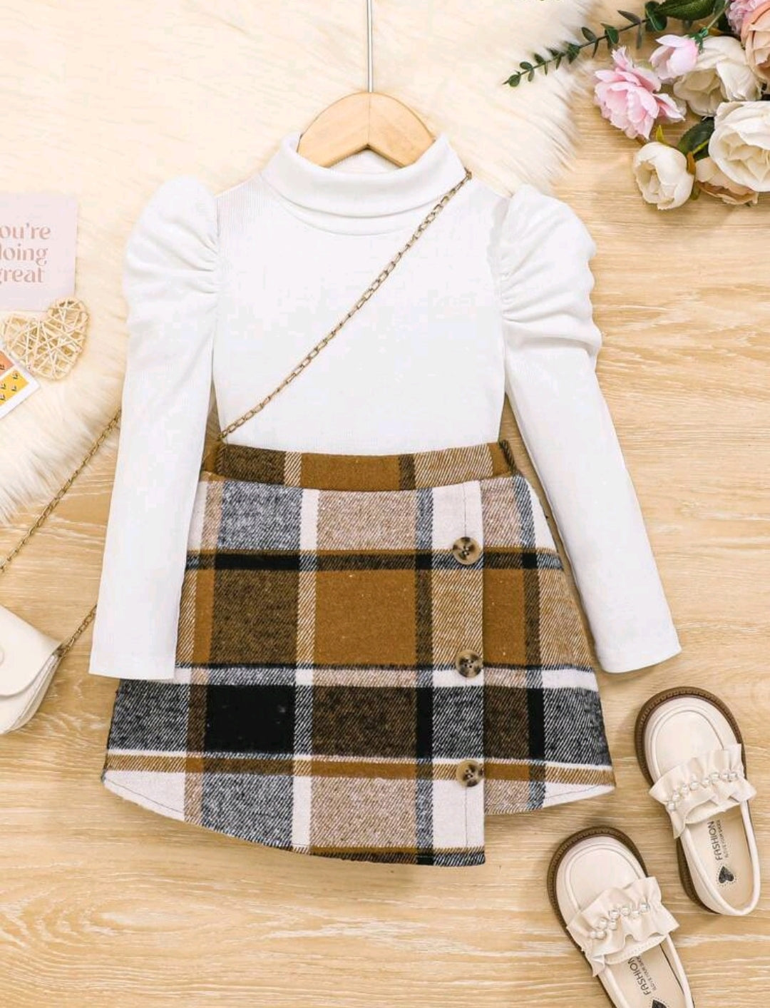 Mangas largas gigot+ falda asimétrica a cuadros