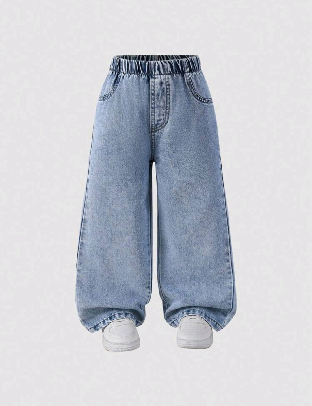 Pantalón de jeans wide leg con detalles de moño en el bolsillo